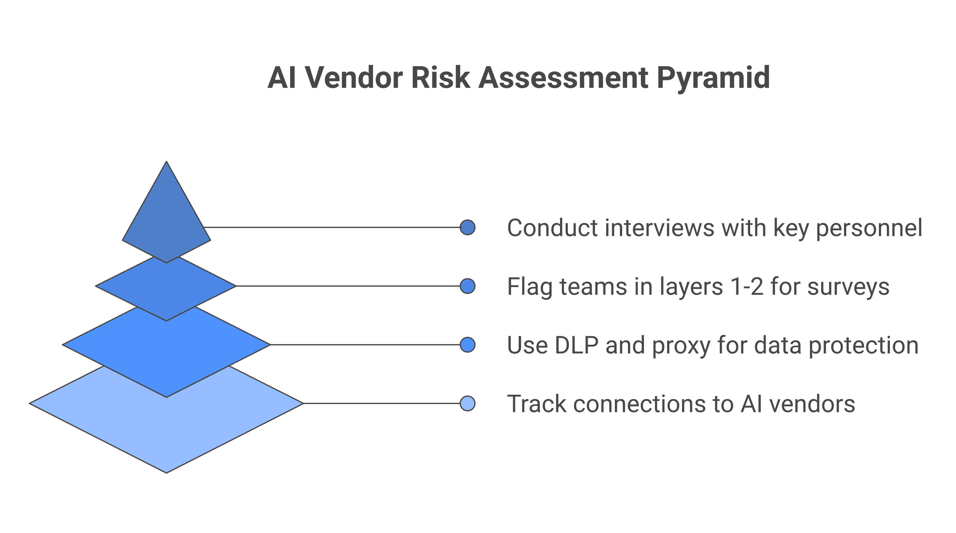 Finally, conduct spot interviews with engineering, finance, and legal to catch what network discovery missed. Ask: “What AI systems have you shipped in the last 90 days that you use internally or ship to customers?” You’ll find 20% of the systems this way.