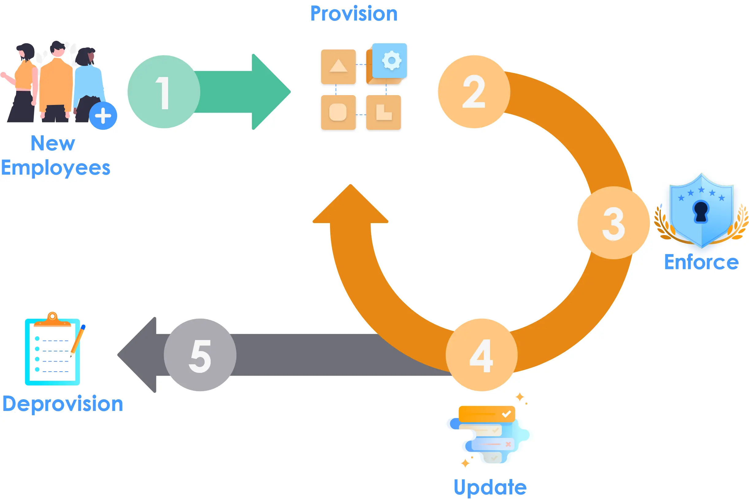Employee access demands develop when a person is promoted to a new position in another company, uses a new device, or adopts a new software tool.